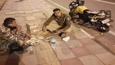 અહીં જે ફોટો વાયરલ થયો છે તેને જોતાં એવું જ લાગે છે કે તે ઘરથી દૂર કોઈ ફરજના ભાગરૂપે ગયાં છે. ફોટો ઘણું બધું કહી જાય છે. આ વાયરલ થયેલા ફોટોને વ્યવસ્થિત જોતાં માલુમ પડે છે કે તે દિલ્લીનો હોય શકે છે. કેમ કે બાઈકનાં નંબર કહે છે કે તે દિલ્લીનો છે. એક CRPFના જવાન અને એક પોલીસ જવાન બંને સાથે બેસીને બહારનું પાર્સલ કરેલું ભોજન જમી રહ્યા છે.