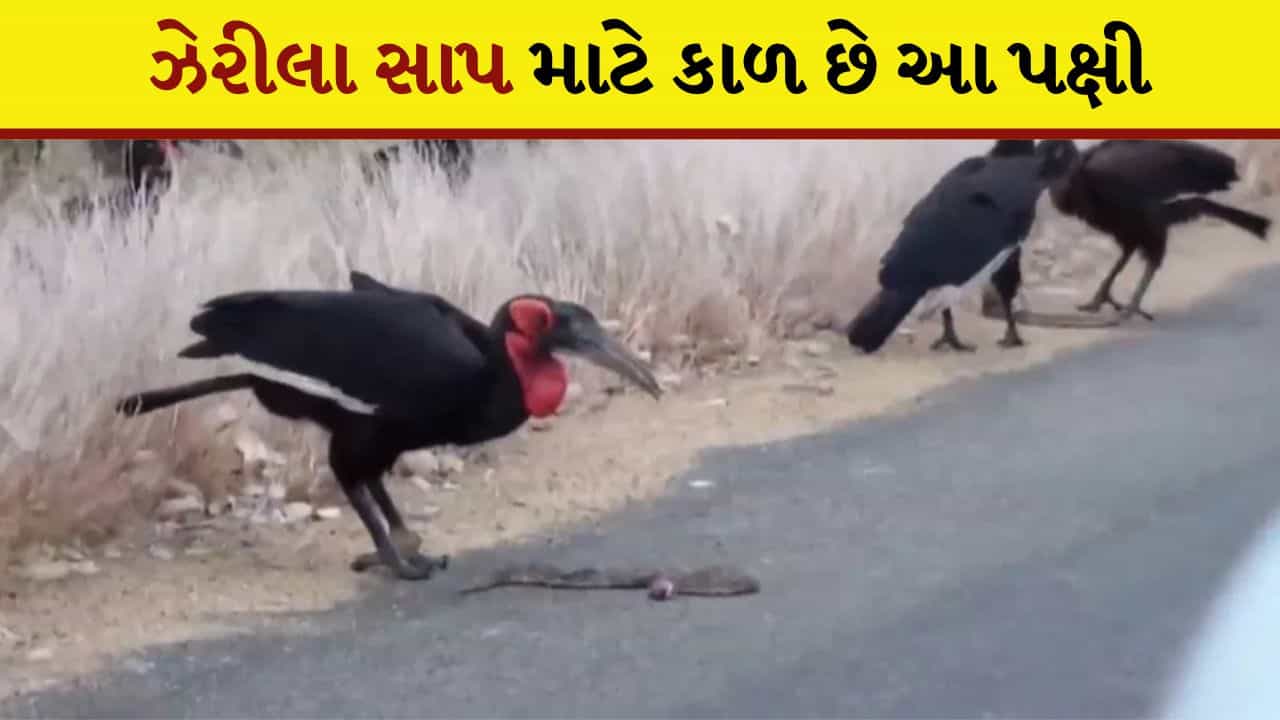 સાપ એવા જીવો છે જેને જોઈને જ લોકો ધ્રુજી ઉઠે છે. કારણ કે તેમને દુનિયાના સૌથી ખતરનાક જીવોમાંના એક માનવામાં આવે છે. જોકે, દુનિયામાં કેટલાક પક્ષીઓ એવા છે જે સાપથી બિલકુલ ડરતા નથી, પરંતુ સાપ તેમનાથી ડરે છે. હા, આવું જ એક પક્ષી ગ્રાઉન્ડ હોર્નબિલ છે, જે આફ્રિકામાં રહે છે. ગ્રાઉન્ડ હોર્નબિલને સાપનો ખૂની માનવામાં આવે છે, ભલે તે ગમે તેટલા ઝેરી હોય. આને લગતો એક વીડિયો સોશિયલ મીડિયા પર વાયરલ થઈ રહ્યો છે, જે બધાને ચોંકાવી રહ્યો છે.