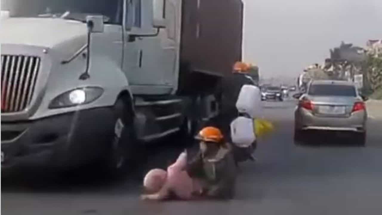 અચાનક આગળ જઈ રહેલી કારની સાઇડ બાઇકને ટક્કર મારે છે અને સંતુલન બગડવાને કારણે પાછળ બેઠેલી મહિલા અને બાળક નીચે પડી ગયા હતા. તે દરમિયાન સામેથી આવતી ટ્રકનું ટાયર બાઈક પર આવવાનું જ હતું કે, મહિલાએ પોતાના જીવની પરવા છોડીને ઝડપથી બાળકને સાઈડમાં લઈ લે છે. આ વીડિયો એટલો ભયાનક છે કે તેને જોઈને કોઈ પણ લોકોના શ્વાસ થંભી જાય છે.