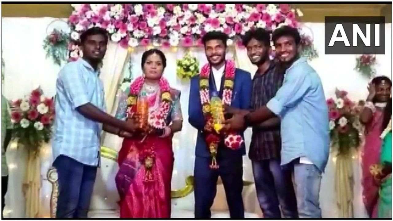 Tamil Nadu | A newly married couple was gifted bottles of petrol and diesel by their friends in Cheyyur village of Chengalpattu district.