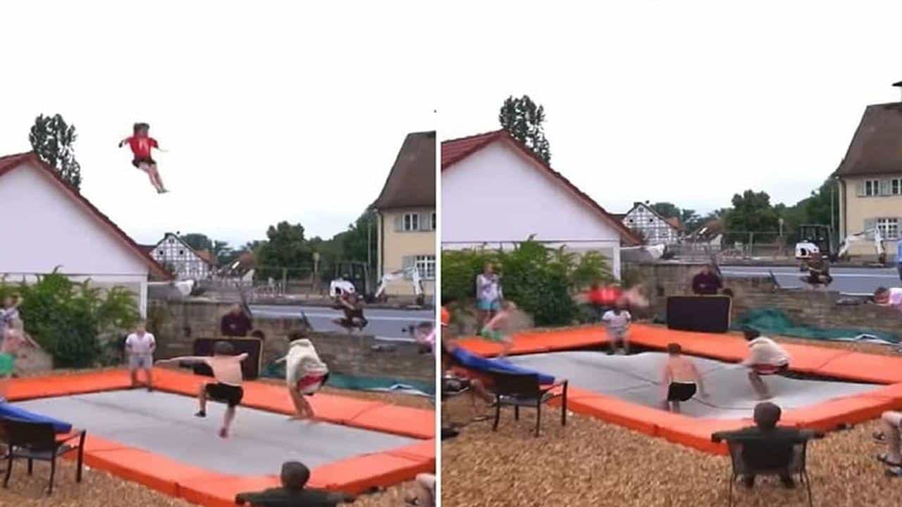 હકીકતમાં, વીડિયો (Funny Viral Videos)માં એક છોકરો ટ્રામલિનની મદદથી હવામાં ઉછાળતો જોવા મળે છે અને નીચે ઉભેલા 4-5 લોકો તેની મદદ કરી રહ્યા છે. વીડિયોમાં તમે જોઈ શકો છો કે કેવી રીતે 2-3 લોકો ખૂબ જ પરફેક્ટ ટાઈમિંગ સાથે ટ્રામલિન પર કૂદકો મારે છે અને તે પછી વચ્ચેનો બીજો છોકરો તેમની મદદથી હવામાં બેકફ્લિપ મારે છે.