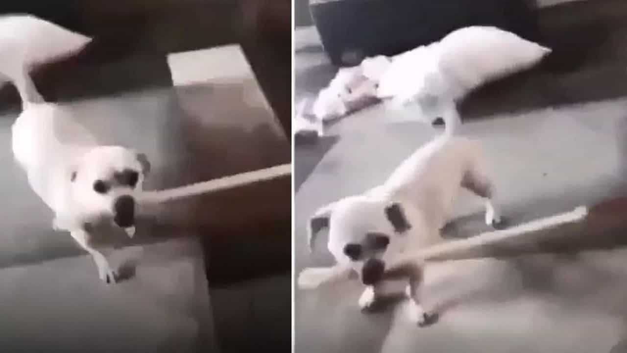 વીડિયોમાં જોઈ શકાય છે કે રૂમમાં એક છોકરી હાજર છે અને તે સોફા પર બેઠેલા કૂતરાનો વીડિયો બનાવી રહી છે. ત્યાં હાજર એક લાકડીને દાંત વડે પકડીને છોકરીને કૂતરો મારતો જોઈને તમને નવાઈ લાગશે. કૂતરાને જોયા પછી તમને પણ કંઈક એવું લાગશે કે તે તેને માતાની જેમ મારતો હોય છે. છોકરી પણ હસી રહી છે અને મોબાઈલ કેમેરામાં કૂતરાનો વીડિયો બનાવી રહી છે.