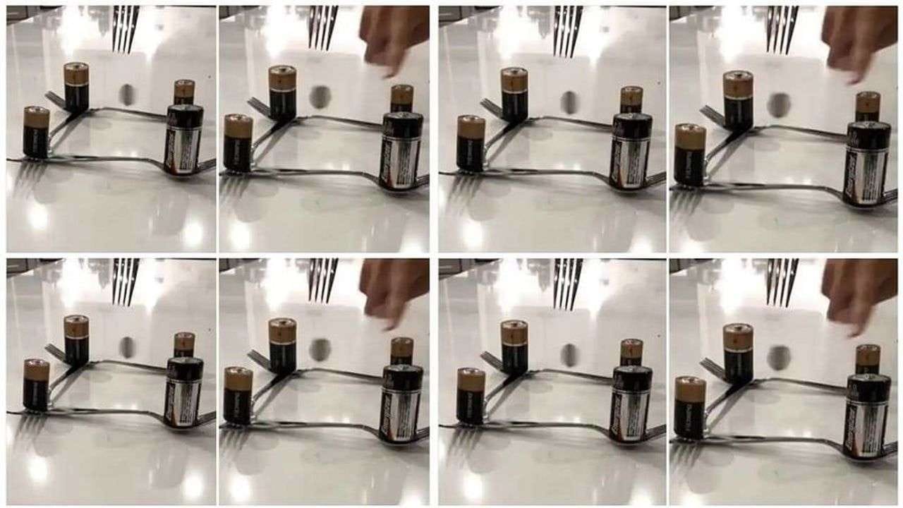 વાયરલ થઈ રહેલા વીડિયોમાં તમે જોઈ શકો છો કે એક વ્યક્તિએ ટેબલ પર ચમચીની ઉપર ત્રણ બેટરીઓ રાખી છે. જેવી તે ચોથી બેટરી (Battery) રાખે છે કે તરત જ વચ્ચે રાખેલો સિક્કો (Coin Viral Video )અચાનક ઊંચો થઈ જાય છે અને ઝડપથી ફરવા લાગે છે અને પછી તે વ્યક્તિ સિક્કાની ઉપર ચમચી લાવે છે કે તરત જ તે સિક્કો હવામાં ફરવા લાગે છે, જેને જોઈને બધા જ ચકિત થઈ જાય છે.