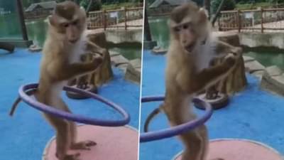 સોશિયલ મીડિયા પર વાયરલ થઈ રહેલા આ વીડિયોમાં એક વાંદરો હુલા હૂપ (Hula Hoop)કરતો દેખાય છે. તે જે રીતે એ કામ કરી રહ્યો છે, તે જોઈને ભલભલા ચોંકી જશે. વાંદરો પોતાની કમરને ગોળ ગોળ ફેરવીને આ પરાક્રમ બતાવી રહ્યો છે.તે એટલી પરફેક્ટ રીતે એ કામ કરી રહ્યો છે, જેને જોઈ કહી શકાય કે તેને આની ટ્રેનિંગ આપવામાં આવી હશે. હુલા હૂપ કરતા વાંદરાના ચહેરાની ભાવ પણ જોવા જેવા છે. આ વીડિયોને લોકો ખુબ પંસદ કરી રહ્યા છે.