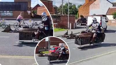 વીડિયોમાં તમે જોઈ શકો છો કે બાઈક ચલાવનાર વ્યક્તિએ વિચિત્ર પોશાક પહેર્યો છે અને તે ખુશીથી રોડ પર આ અવનવું બાઇક ચલાવી રહ્યો છે. જો તમે વીડિયોને ધ્યાનથી જોશો તો સમજી શકશો કે આ બાઇકને કાચથી ઢાંકીને ખાસ રીતે તૈયાર કરવામાં આવી છે. જેથી તેના પૈડા લોકોને ના દેખાય ! આ ઉપરાંત, બાઈક ચલાવનાર વ્યક્તિએ દિન જારિનનો પોશાક પહેર્યો છે. જેને સામાન્ય રીતે મંડલોરિયન અથવા મંડો તરીકે ઓળખવામાં આવે છે, જે સ્ટાર વોર્સનું ફિલ્મનું એક પાત્ર છે.