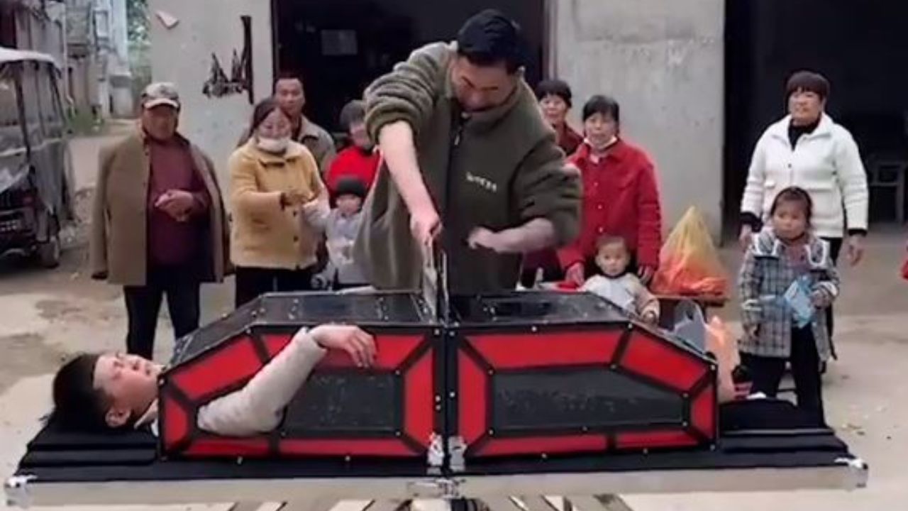 આ વીડિયોમાં પણ તે જ દેખાય છે. જાદુગર એક યુવાનને બોક્સમાં મૂકીને બંધ કરે છે અને પછી તેને વચ્ચેથી કાપી નાખે છે. પાછળ ઉભેલા લોકો આ જોઈને આશ્ચર્યચકિત થઈ ગયા. જાદુગર તે બોક્સને અલગ કરે છે પરંતુ પછી એક વ્યક્તિ ત્યાં આવે છે અને જાદુગરનું સત્ય બધાની સામે લાવે છે. તે પહેલા પગથી બોક્સ ખોલે છે અને બતાવે છે કે તેમાં કંઈ નથી. આ પછી તે માથું ધરાવતું બોક્સ ખોલે છે, જેમાં સાથીદાર ફોલ્ડ થયેલો છે, એટલે કે તેનું આખું શરીર એક ભાગમાં છે.