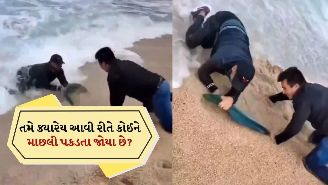 વીડિયોમાં તમે દરિયા કિનારે એક માણસને જોઈ શકો છો, જે મોટી માછલી પકડવા માટે ઉત્સુક છે પરંતુ જ્યારે પણ તે પ્રયાસ કરે છે, ત્યારે તે તેની પકડમાંથી સરકી જાય છે. પછી તેનો એક મિત્ર માછલી પકડવા આવે છે અને તે પણ ખૂબ પ્રયાસ કરે છે, પરંતુ તે પણ નિષ્ફળ જાય છે. જો કે ત્રીજો મિત્ર તેમની રમતમાં પ્રવેશ કરે છે અને ત્યારે જ તેઓ માછલીને કાબૂમાં રાખી શકે છે. આ વીડિયો ખૂબ જ રમુજી છે અને ચોક્કસ તમને હસાવશે.