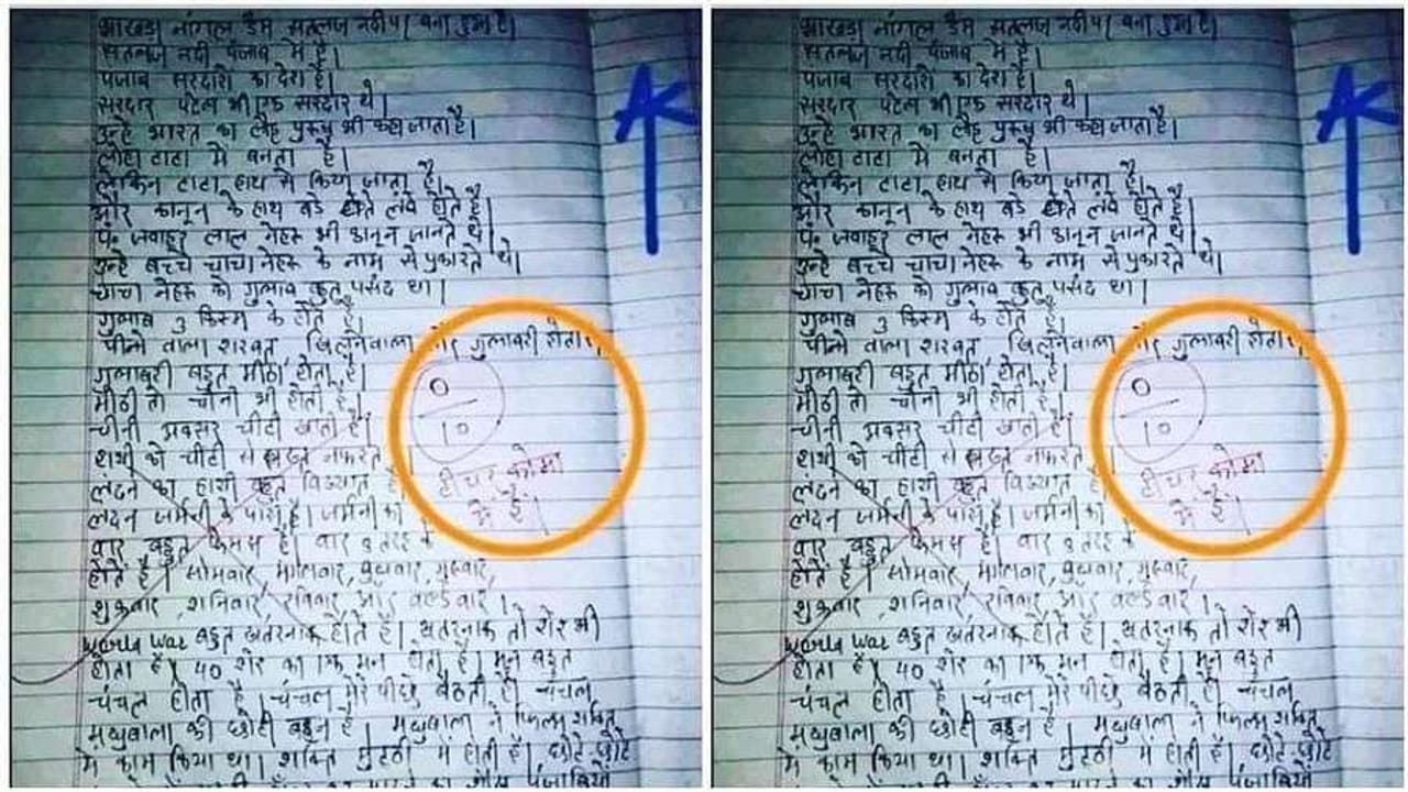 તસવીરમાં તમે જોઈ શકો છો કે ભાખરા નાગલ પ્રોજેક્ટ અંગે પ્રશ્ન પૂછવામાં આવ્યો હતો. જ્યારે વિદ્યાર્થી આનો જવાબ આપવાનું શરૂ કરે છે, ત્યારે તે લખે છે કે ડેમ સતલજ નદી પર બાંધવામાં આવ્યો છે અને જેમ જેમ તેનો જવાબ આગળ વધે છે, વાત સરદાર પટેલ, ટાટા-બાય-બાય, પંડિત જવાહરલાલ નેહરુ, ગુલાબની ખેતી, ખાંડ, લંડન, જર્મની અને વિશ્વયુદ્ધ સુધી પહોંચે છે અને છેલ્લે છોકરો પંજાબ અને સતલજ નદી થઈને ડેમ સુધી પહોંચે છે.