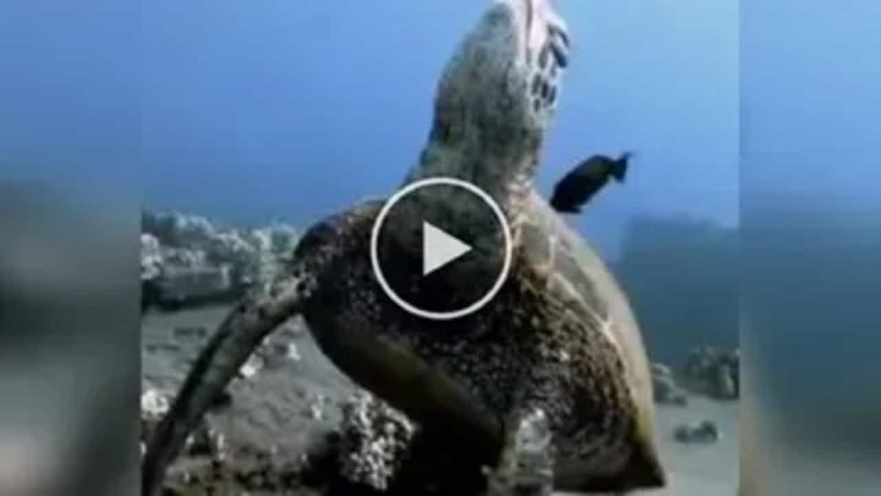 Trending Video : સોશિયલ મીડિયા એ વાયરલ વીડિયોનો ખજાનો છે. તે જ રીતે ધરતી પરના વિશાળ દરિયામાં સુંદરતાનો ખજાનો જોવા મળે છે. દરિયાની અંદર અસંખ્ય માછલી, કાચબા, શાર્ક, ડોલ્ફિન જેવા પ્રાણીઓ જોવા મળે છે. તેની સાથે સાથે ત્યાંની અનોખી વનસ્પતિ, દુબી ગયેલા જાહાજોના કાટમાળ પણ લોકોનું ધ્યાન ખેંચે છે. આ દરિયાની અંદરના વીડિયો સોશિયલ મીડિયા પર ખુબ વાયરલ (Viral Video) થતા હોય છે. હાલમાં દરિયામાં તરતા કાચબાનો એક વીડિયો સોશિયલ મીડિયા પર વાયરલ થઈ રહ્યો છે.