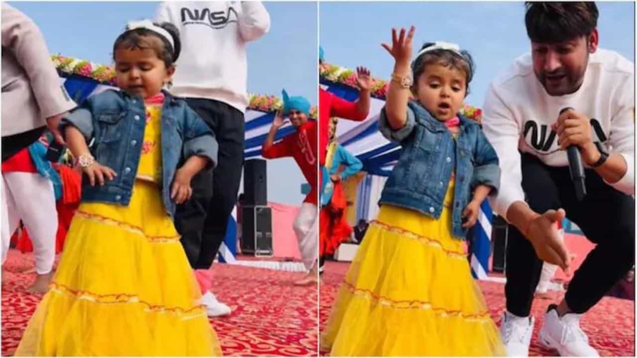 ભારતમાં દરેક શુભ પ્રસંગે લોકો મુક્ત પણે ડાન્સ કરતા હોય છે. હાલમાં એક હરિયાણી સોન્ગ ‘કમર તેરી લેફ્ટ રાઈટ’ ભારે ટ્રેન્ડમાં છે. આજ સોન્ગ પર ડાન્સ કરીને લોકો સોશિયલ મીડિયા પર વીડિયો શેયર કરી રહ્યા છે. આવો જ એક વીડિયો સોશિયલ મીડિયા પર વાયરલ થયો છે. આ વીડિયોમાં એક નાની છોકરી સરસ મજાના ડ્રેસમાં જોવા મળી રહી છે. તેની સાથે સિંગર અજય હુડ્ડા પણ જોવા મળી રહ્યો છે. એક પ્રસંગ પર સોન્ગ ગાવા આવનારા સિંગર અજય હુડ્ડાએ આ છોકરી સાથે ડાન્સ કર્યો હતો. નાની છોકરી ‘કમર તેરી લેફ્ટ રાઈટ’ પર સરસ મજાના ડાન્સ સ્ટેપ્સ કરી રહી છે, જેને જોઈ લોકો મંત્રમુગ્ધ થઈ ગયા હતા.