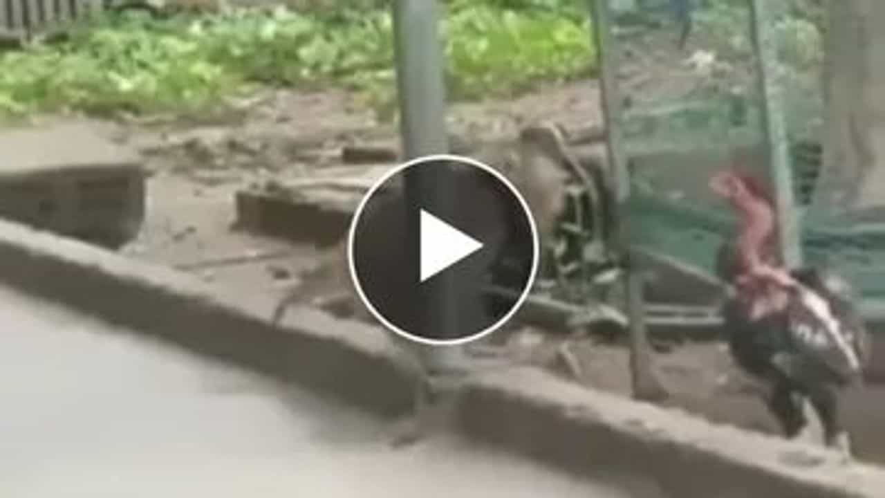 આ વાયરલ વીડિયોમાં જોઈ શકાય છે કે, એક વાંદરો અને મરઘા વચ્ચે લડાઈ થઈ રહી છે. ત્યા એક કૂતરો પણ જોવા મળી રહ્યો છે. વાંદરા અને મરઘા વચ્ચેની આવી લડાઈ તમે પહેલા ક્યારેય નહીં જોઈ હશે. આ વીડિયોમાં તમે જોઈ શકો છો કે રસ્તાના કિનારે એક મરઘો ઊભો છે અને તેના પર એક વાંદરો કોઈ કારણસર હુમલો કરે છે. તે વાંદરો WWEની સ્ટાઈલમાં તે મરઘાને ધોઈ કાઢે છે. તે મરઘાની ડોક પકડી પકડીને તેને મારે છે. તે મરઘો ક્યારેક પોતાને બચાવતા કે વાંદરાને હુમલાનો જવાબ આપતા જોવા મળી રહ્યો છે. ખબર નહીં ક્યા કારણથી પણ તે વાંદરો તે બિચારા વાંદરાને વારંવાર મારવા આવે છે. મરઘાની હાલત ઘણી દયનીય થઈ જાય છે.