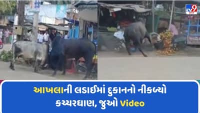 આ વીડિયો સોશિયલ મીડિયા પર ઘણો વાયરલ થઈ રહ્યો છે. આ વીડિયોમાં બે આખલા એકબીજા સાથે લડી રહ્યા છે. બજારની વચ્ચોવચ થયેલી આ લડાઈ નજીકના દુકાનદારને ઘણી મોંઘી પડી. વાસ્તવમાં, બંને આખલા લડતા-ઝઘડતા તેની દુકાન પાસે ગયા અને દુકાનને વેરવિખેર કરી નાખી. આખલાની લાડાઈથી દુકાનોને ભારે નુકસાન થયુ છે. ત્યારે આખલાની આ લડાઈનો ત્યાં નજીકમાં ઉભેલા એક વ્યક્તિએ સમગ્ર ઘટનાની વીડિયો ક્લિપ બનાવીને વાયરલ કરી હતી.
