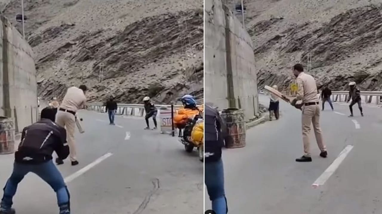 Viral Video : પોલીસકર્મીનો અનોખો અંદાજ ! બાઈકર્સ સાથે રસ્તા પર ક્રિકેટ રમતા પોલીસકર્મીનો વીડિયો સોશિયલ મીડિયા પર વાયરલ