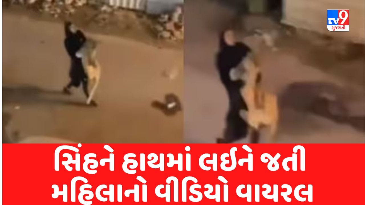 Viral Video : સિંહને હાથમાં લઇને જતી મહિલાનો વીડિયો વાયરલ, લોકોએ તેને વન્ડર વુમન ગણાવી