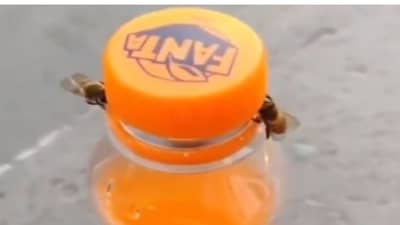 બે મધમાખીએ ખૂબ જ સરળતાથી ફેન્ટા બોટલનું ઢાંકણું ખોલ્યું