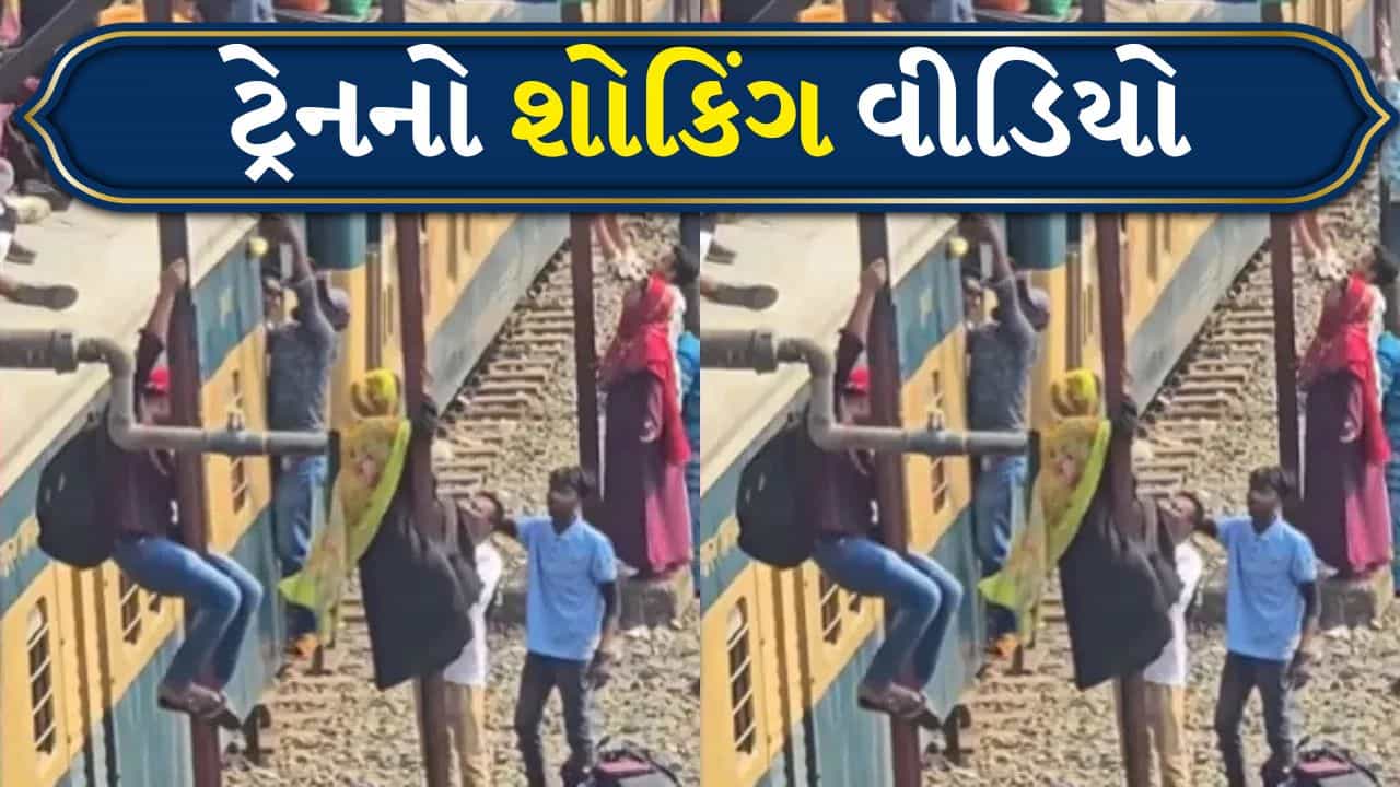 (Disclaimer: અહીં આપવામાં આવેલો વીડિયો સોશિયલ મીડિયા પર વાયરલ થયો છે. ટ્રેન પર આવી રીતે ચઢીને બેસવું અને નીચે સ્ટંટની જેમ ઉતરવું એ ગુના પાત્ર કૃત્ય છે. રેલવે પોલીસ એક્શન લઈ શકે છે. Tv9 ગુજરાતી આવા ન્યૂઝને પ્રોત્સાહન આપતું નથી.)
