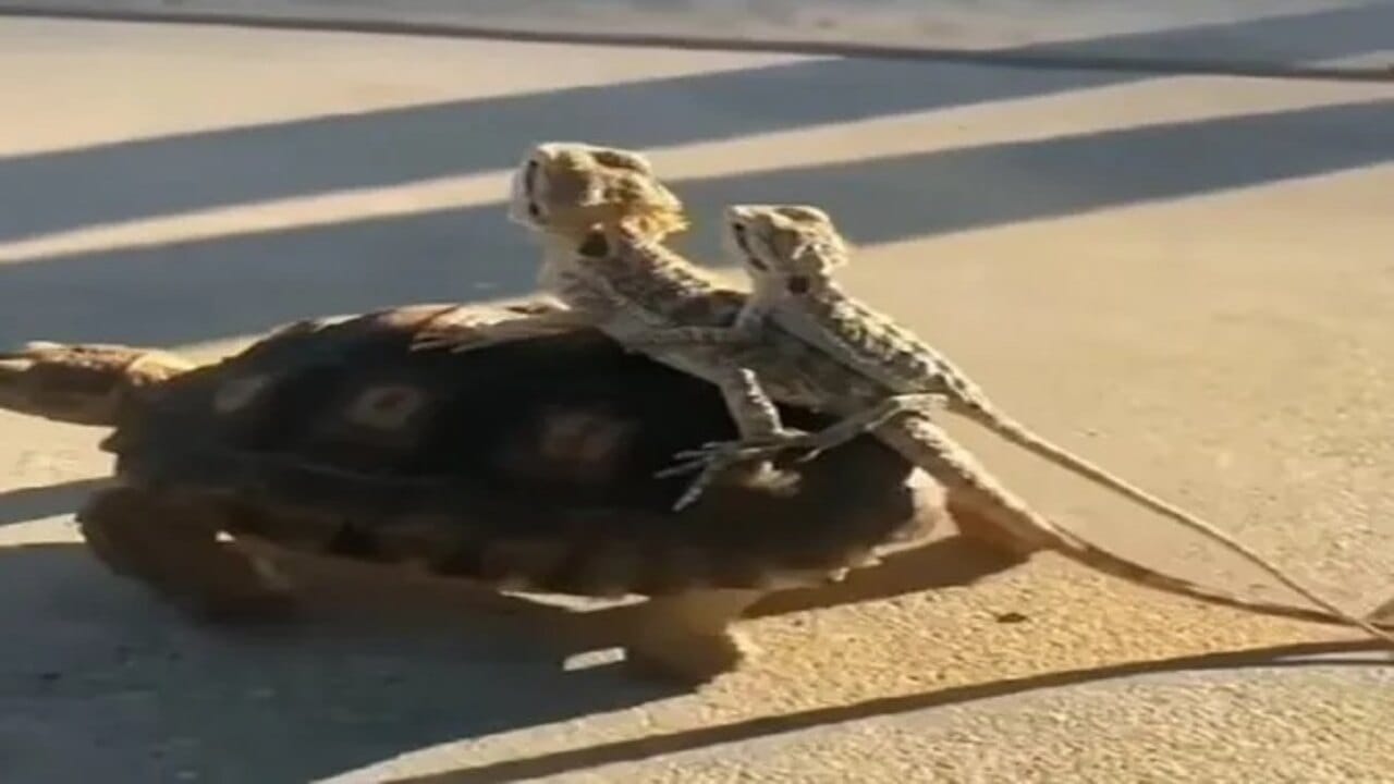 વાયરલ વીડિયો : કાચબા એ કાચીંડાઓને પીઠ પર બેસાડીને ફેરવ્યા, લોકો એ કહ્યુ- આ સાચી દોસ્તી