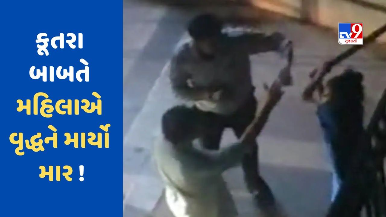 કૂતરાને લઈને બબાલ ! 23 વર્ષની યુવતીએ વૃદ્ધને લાકડી વડે માર માર્યો, જુઓ Viral Video