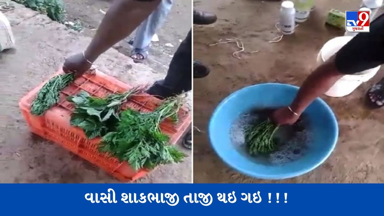 આ સમયે જે વીડિયો વાયરલ થઈ રહ્યો છે તે પણ કંઈક ઓછો નથી. આમાં પણ એક વ્યક્તિ રસાયણોની મદદથી વાસી શાકભાજીને તાજી કરતો જોવા મળે છે. વીડિયોમાં તમે જોઈ શકો છો કે એક વ્યક્તિ સંપૂર્ણપણે સુકાઈ ગયેલી શાકભાજીઓને કેમિકલવાળા પાણીમાં નાખે છે અને તેને બહાર કાઢે છે. આ પછી, થોડી જ વારમાં, તે શાકભાજી સંપૂર્ણપણે તાજી થઈ જાય છે.