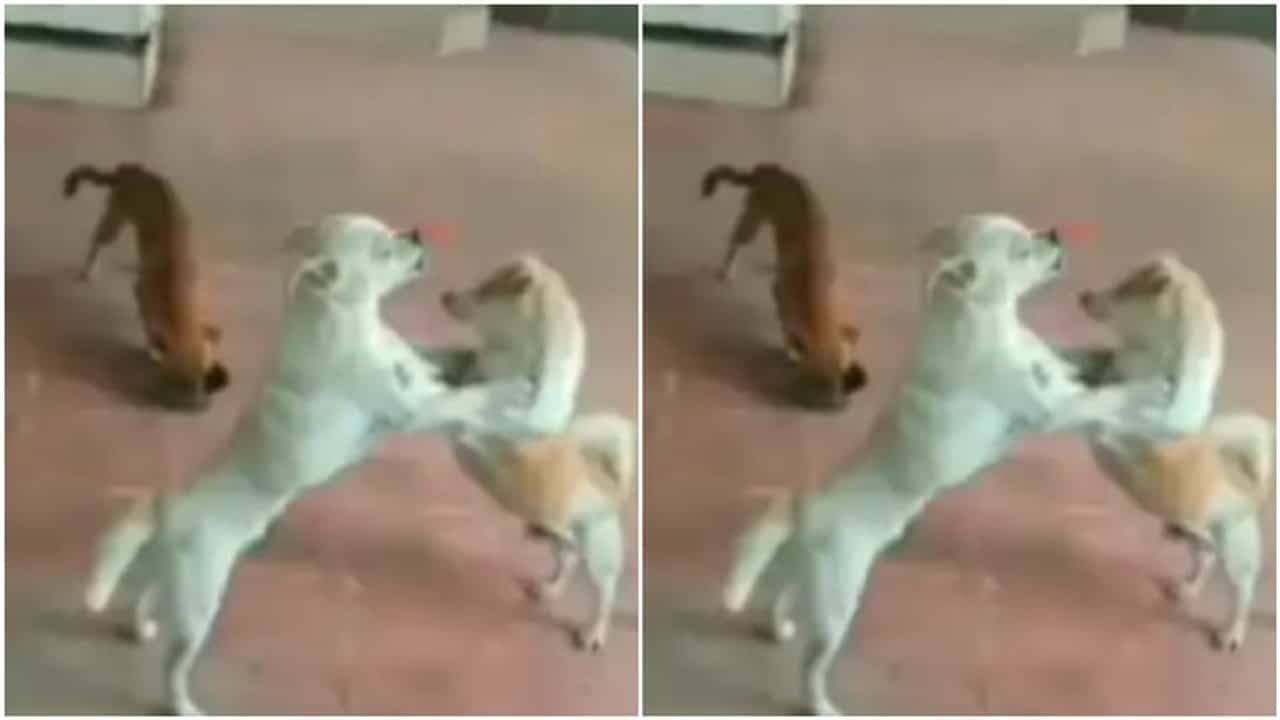 શ્વાનનો એક ફની વીડિયો સોશિયલ મીડિયા (Social Media) પર લોકોમાં ચર્ચાનો વિષય બન્યો છે. આ જોયા પછી તમે પણ તમારા હાસ્ય પર કાબુ નહીં રાખી શકો. તમે બધાએ બાળપણમાં એક વાર્તા તો સાંભળી જ હશે. જેમાં બે બિલાડીઓ વચ્ચેની લડાઈમાં વાંદરો જીતી જાય છે. આજે તમે આ વીડિયો (Dog viral video) દ્વારા આ નિવેદનને સાકાર થતા જોશો. આ વીડિયો (Funny Viral Video) માં જે રીતે બે કૂતરાઓની લડાઈમાં ત્રીજા કૂતરાએ ફાયદો ઉઠાવ્યો છે. તે જોઈને તમે પણ કહેશો કે ‘વાહ શું દિમાગ છે.’