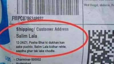 હાલમાં જ એક તસ્વીર સોશિયલ મીડિયામાં (SOCIAL MEDIA) વાયરલ થઈ રહી છે. આ તસ્વીરનું એડ્રેસ જોઈને તમે ખુદ પણ અચંબામાં પડી જશો. આ તસ્વીરમાં જે એડ્રેસ લખ્યું છે કે, સલીમ લાલા, 12-24/z1, પાશાભાઈની દુકાને આવીને પૂછી લેવાનું કે સલીમ કાકા ક્યાં રે રહે છે તુરંત જ ઘર સુધી છોડી જશે. ચારમિનાર, હૈદરાબાદ. લોકો આ તસ્વીરની મજા લઈ રહ્યા છે. ઘણા લોકો આ તસ્વીર જોઈને લખી રહ્યા છે કે, આ ફ્રીમાં લેશે પેકેજ પાકું. ઘણા લોકોનું કહેવું છે કે, આ તસ્વીરને ફોટોશોપ કર્યો છે.