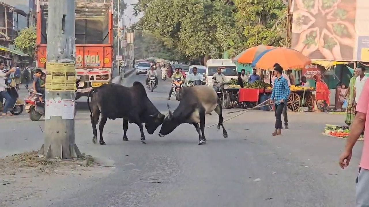 વીડિયો: છોટાઉદેપુરમાં રસ્તા પર આખલા યુદ્ધ, રાહદારીઓના જીવ તાળવે ચોંટ્યા