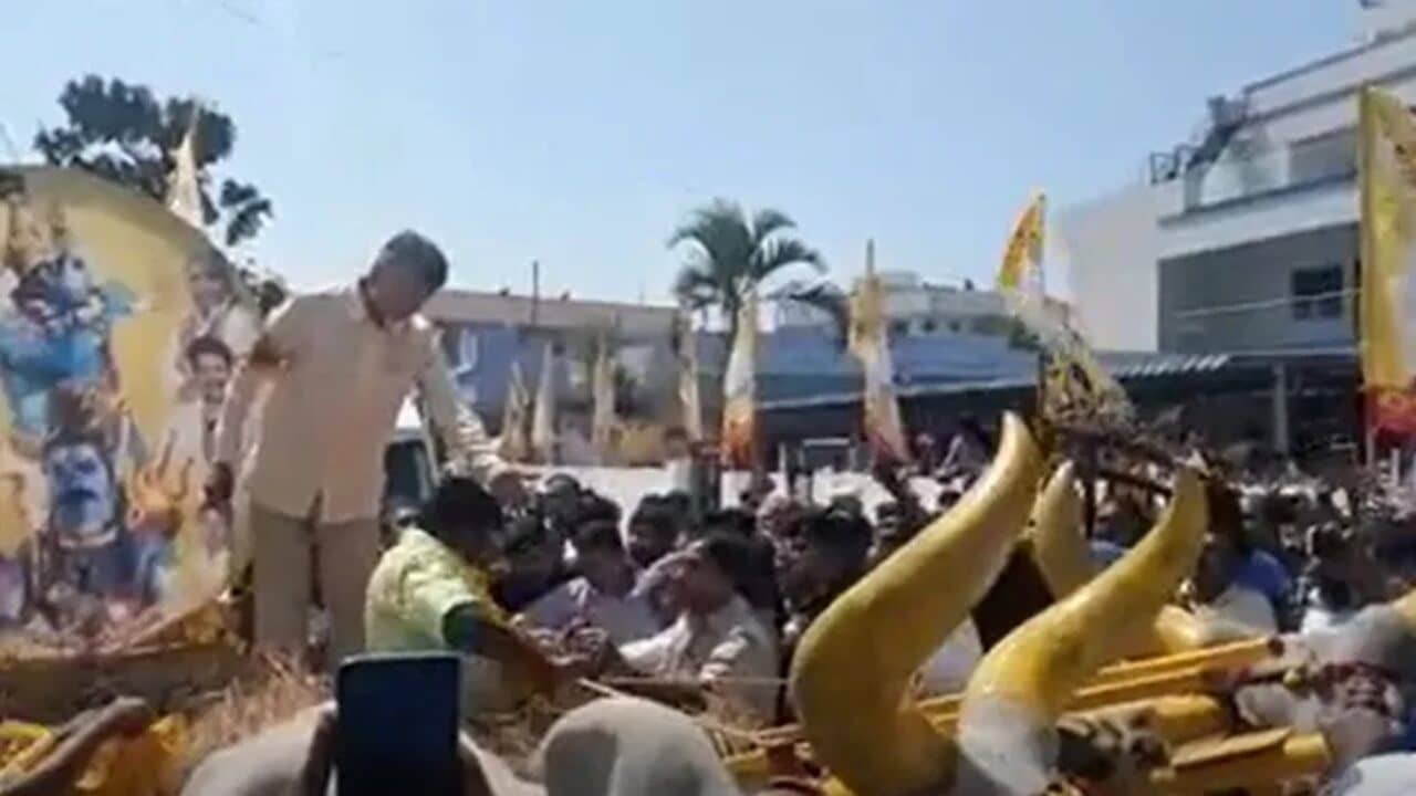 આંધ્રપ્રદેશના પૂર્વ મુખ્યમંત્રી ચંદ્રબાબુ નાયડુ 2024ની ચૂંટણી પહેલા સમગ્ર દેશમાં પ્રભુત્વ જમાવવા માંગે છે. જેના માટે ચંદ્રાબાબુ નાયડુ આંધ્રપ્રદેશમાં પણ કોઈ કસર છોડવા માંગતા નથી. વીડિયોમાં જોઈ શકાય છે કે, નાયડુ બળદગાડા પર સવાર થઈને પોતાના વિરોધીઓને સીધો જવાબ આપવાનો પ્રયાસ કરી રહ્યા છે. રેલી દરમિયાન લોકોની ભારે ભીડ જોવા મળી રહી છે. જણાવી દઈએ કે ચંદ્રબાબુ નાયડુ લોકસભા ચૂંટણીમાં વિપક્ષી પાર્ટીઓના મુખ્ય ચહેરા તરીકે પોતાને સ્થાપિત કરવા માંગે છે.