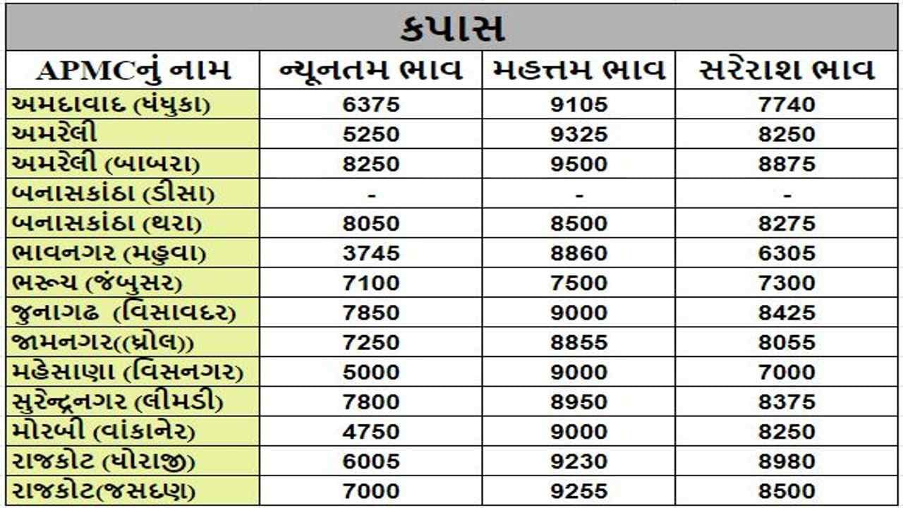 Mandi: અમરેલીના બાબરા APMCમાં કપાસના મહત્તમ ભાવ રૂપિયા 9500 રહ્યા, જાણો જુદા-જુદા પાકના ભાવ. ગુજરાતના વિવિધ APMCમાં અનાજના શુ રહ્યા ભાવ (Prices) તે અંગે, ખેડૂત મિત્રો માટે ગુજરાતના પાકોના APMCના ભાવ (Prices) વિશેની માહિતી દરરોજ અમે તમને આપીશું.