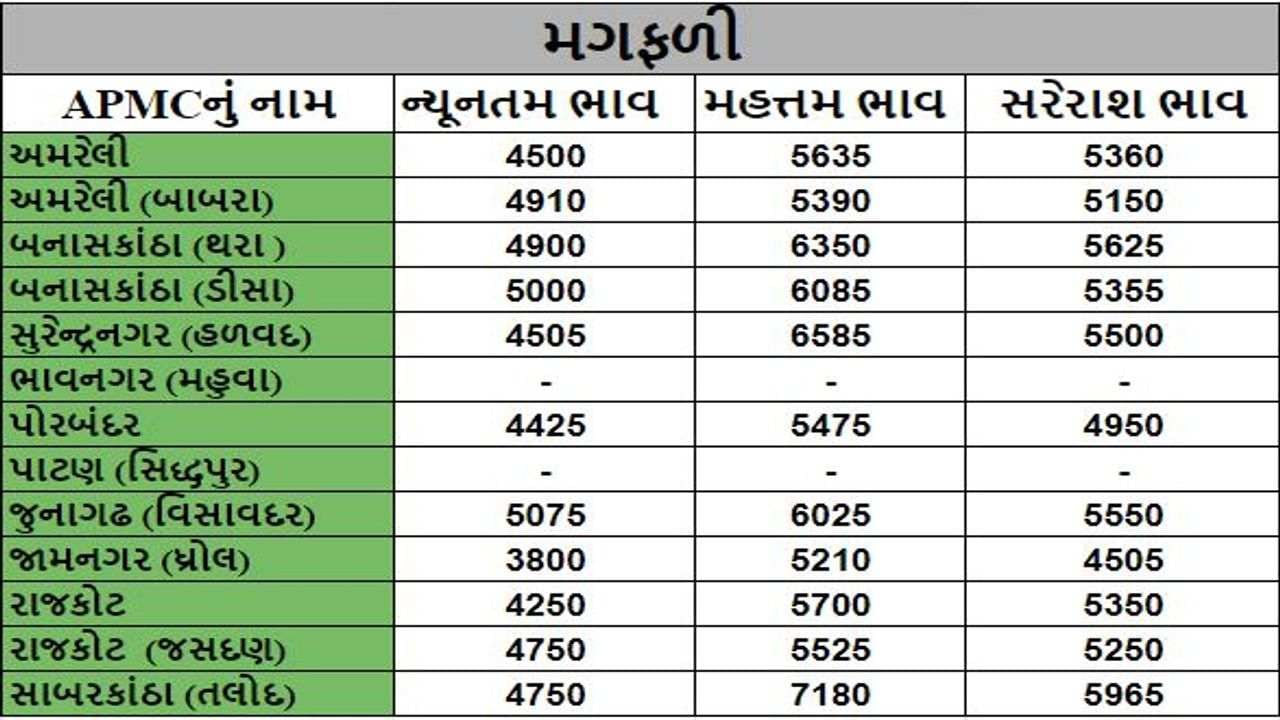 મગફળીના તા.24-12-2021ના રોજ APMCના ભાવ રૂ. 3800 થી 7180 રહ્યા.