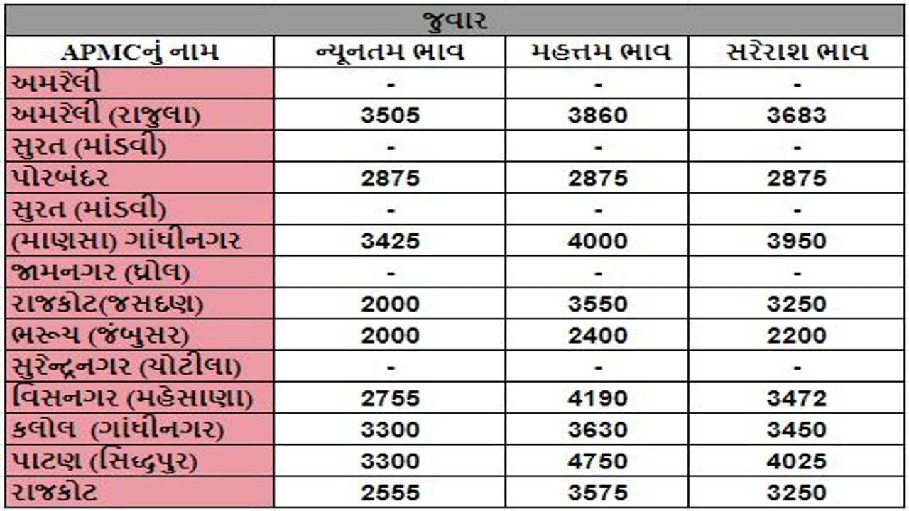 જુવારના તા.29-08-2022ના રોજ APMCના ભાવ રૂ. 2000 થી 4750 રહ્યા.