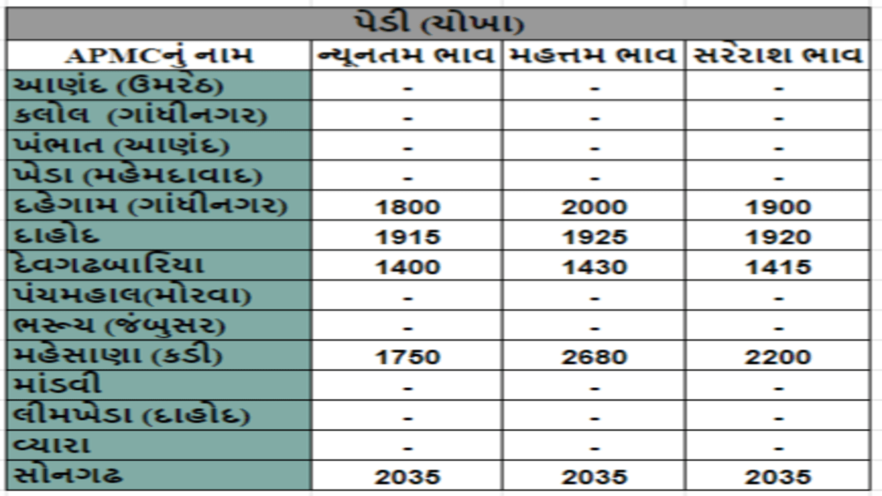 Mandi : જુદા જુદા પાકના ભાવ ( Prices ) ગુજરાતના વિવિધ APMCમાં અનાજના શુ રહ્યા ભાવ ( Prices ) તે અંગે, ખેડૂત મિત્રો માટે ગુજરાતના પાકોના APMCના ભાવ ( Prices ) વિશેની માહિતી દરરોજ અમે તમને આપીશું.