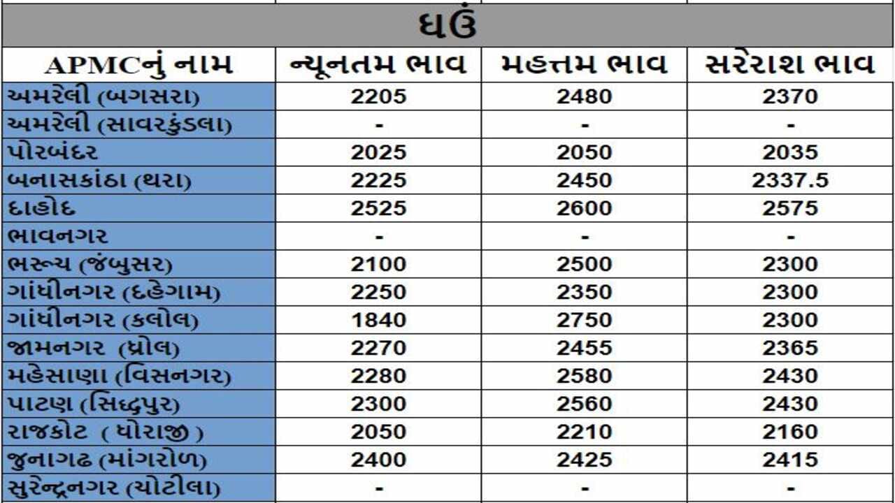 Mandi : રાજકોટ APMCમાં જુવારના મહત્તમ ભાવ રૂપિયા 3880 રહ્યા, જાણો જુદા-જુદા પાકના ભાવ. ગુજરાતના વિવિધ APMC માં અનાજના શુ રહ્યા ભાવ ( Prices ) તે અંગે, ખેડૂત મિત્રો માટે ગુજરાતના પાકોના APMC ના ભાવ ( Prices ) વિશેની માહિતી દરરોજ અમે તમને આપીશું.
