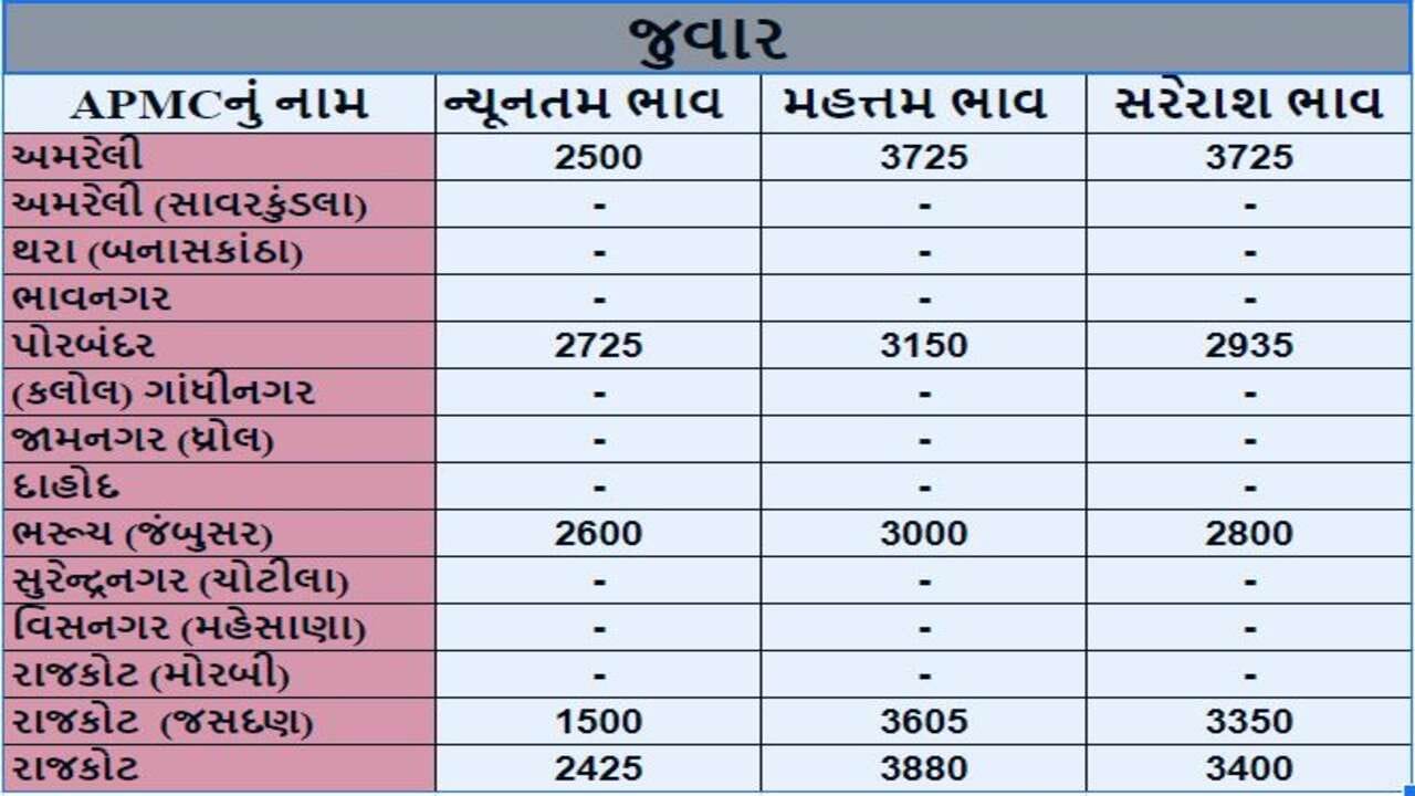 Mandi : રાજકોટ APMCમાં જુવારના મહત્તમ ભાવ રૂપિયા 3880 રહ્યા, જાણો જુદા-જુદા પાકના ભાવ