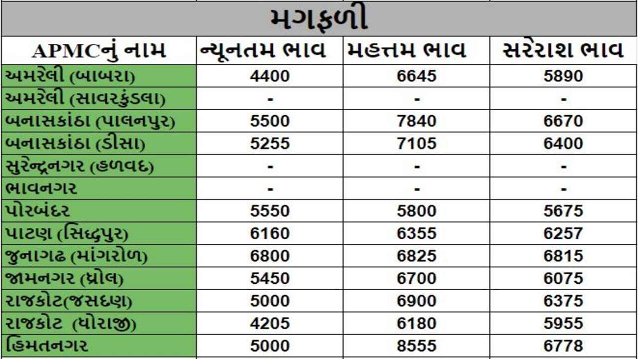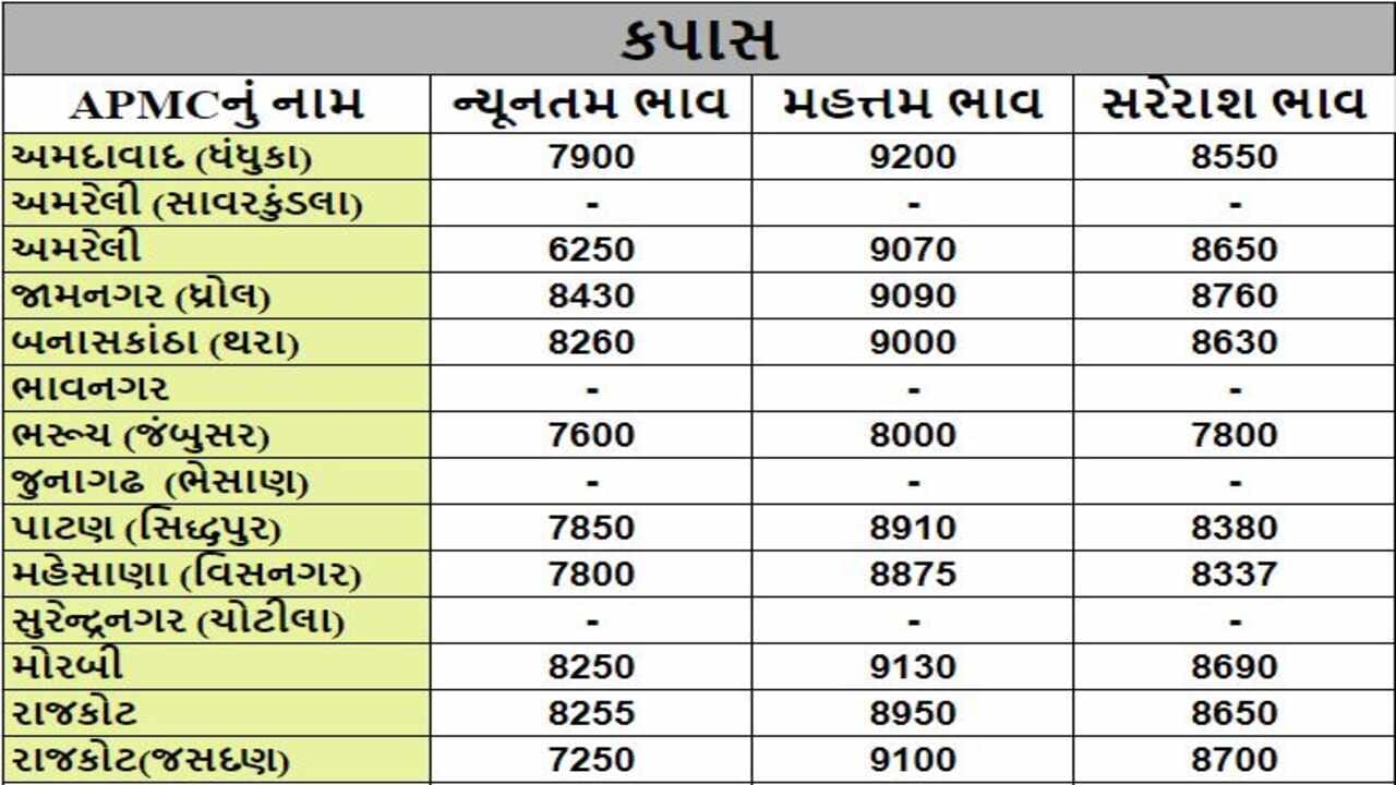 Mandi : જુદા જુદા પાકના ભાવ ( Prices ) ગુજરાતના વિવિધ APMCમાં અનાજના શુ રહ્યા ભાવ ( Prices ) તે અંગે, ખેડૂત મિત્રો માટે ગુજરાતના પાકોના APMCના ભાવ ( Prices ) વિશેની માહિતી દરરોજ અમે તમને આપીશું.