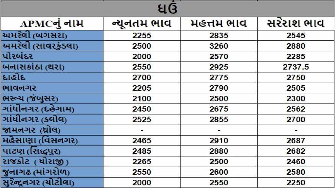 ઘઉંના તા.09-11-2022ના રોજ APMCના ભાવ રૂ.2000 થી 3260 રહ્યા.