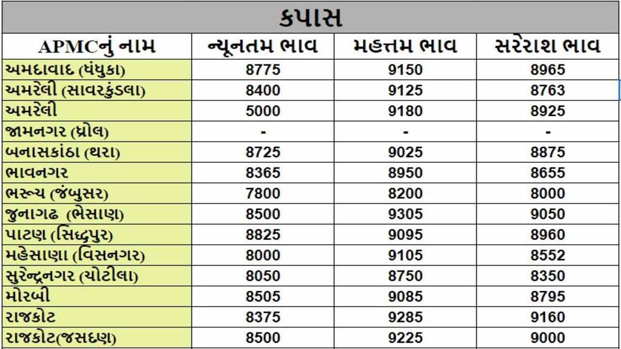 કપાસના તા.09-11-2022ના રોજ APMCના ભાવ રૂ.5000 થી 9305 રહ્યા.