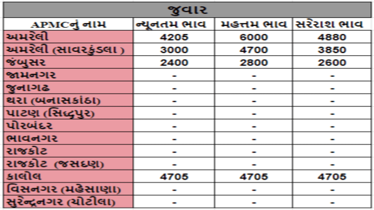 જુવારના તા.20-09-2023ના રોજ APMCના ભાવ રૂ.2400 થી 6000 રહ્યા.
