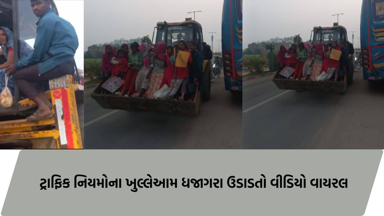 JCB કે ‘બસ’? વાયરલ વીડિયોમાં જોઈ શકાય છે કે, જેસીબીની નાનકડી કેબિનમાં ઠાંસી-ઠાંસીને 10 જેટલી મહિલાઓને બેસાડવામાં આવી હતી. આટલું ઓછું હોય તેમ, JCBના આગળના ભાગમાં અને અન્ય જગ્યાએ બાળકો સહિત કુલ 17 શ્રમિકોને બેસાડીને ચાલક બિન્દાસ રીતે રસ્તા પર ફરી રહ્યો હતો. એક સામાન્ય ભૂલ કે અચાનક બ્રેક પણ આ તમામ નિર્દોષ લોકો માટે જીવલેણ સાબિત થઈ શકી હોત.