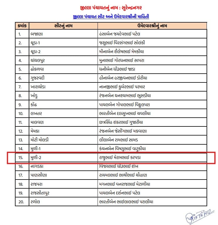 રાજુ કરપડા ગઈકાલ 9 એપ્રિલને ગુરુવારના રોજ ભાજપમાં જોડાયા હતા અને આજે 10 એપ્રિલને શુક્રવારે વિશ્વની સૌથી મોટી પાર્ટીએ, રાજુ કરપડાને ચૂંટણી માટે ઉમેદવાર તરીકે પસંદ કર્યાં. માત્ર કલાકો જૂના કાર્યક્રને એકાએક ચૂંટણી લડવાની ટિકિટ આપવામાં આવતા, સુરેન્દ્રનગરના મૂળી પથંકના વર્ષો જૂના કાર્યકરો આધાતથી ડઘાઈ ગયા છે. વિપક્ષના મિત્રો ભાજપના વર્ષો જૂના કાર્યકરોની ઠેકડી ઉડાવી રહ્યાં છે.