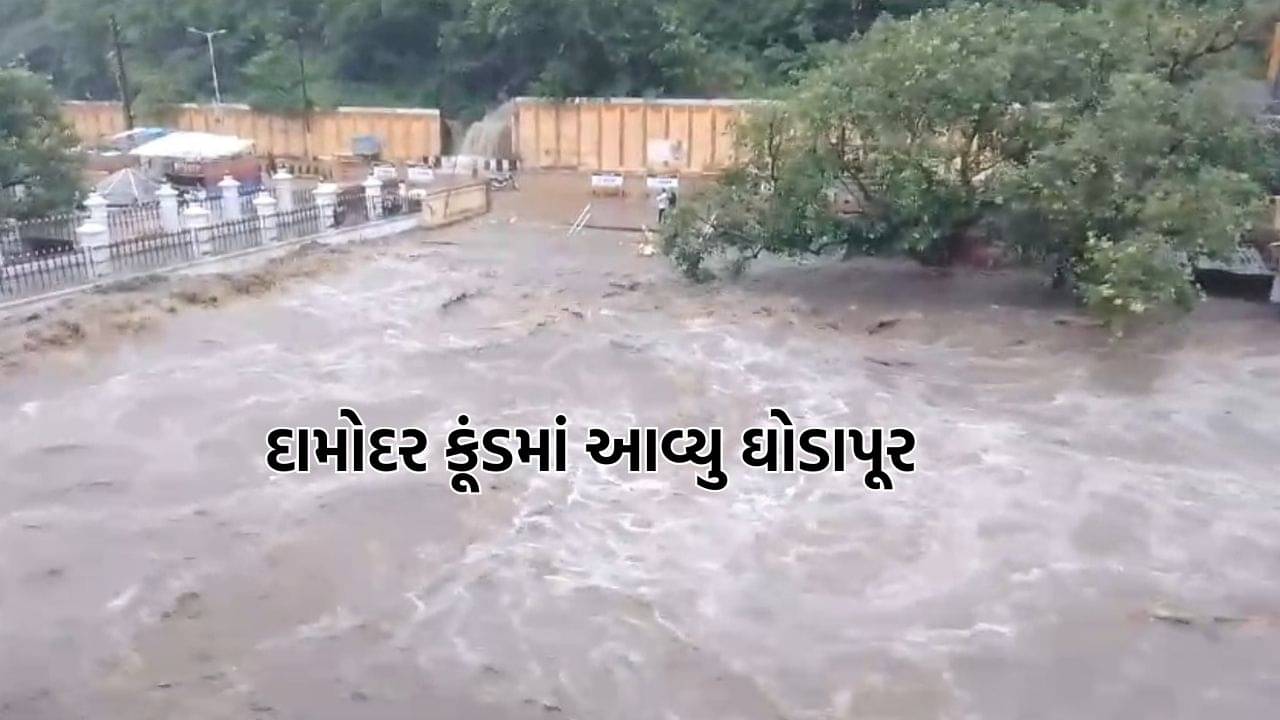 જુનાગઢમાં ગીરનાર પર્વત પર ખાબક્યો 6 ઈંચ વરસાદ, દામોદર કૂંડમાં આવ્યુ ઘોડાપૂર- Video