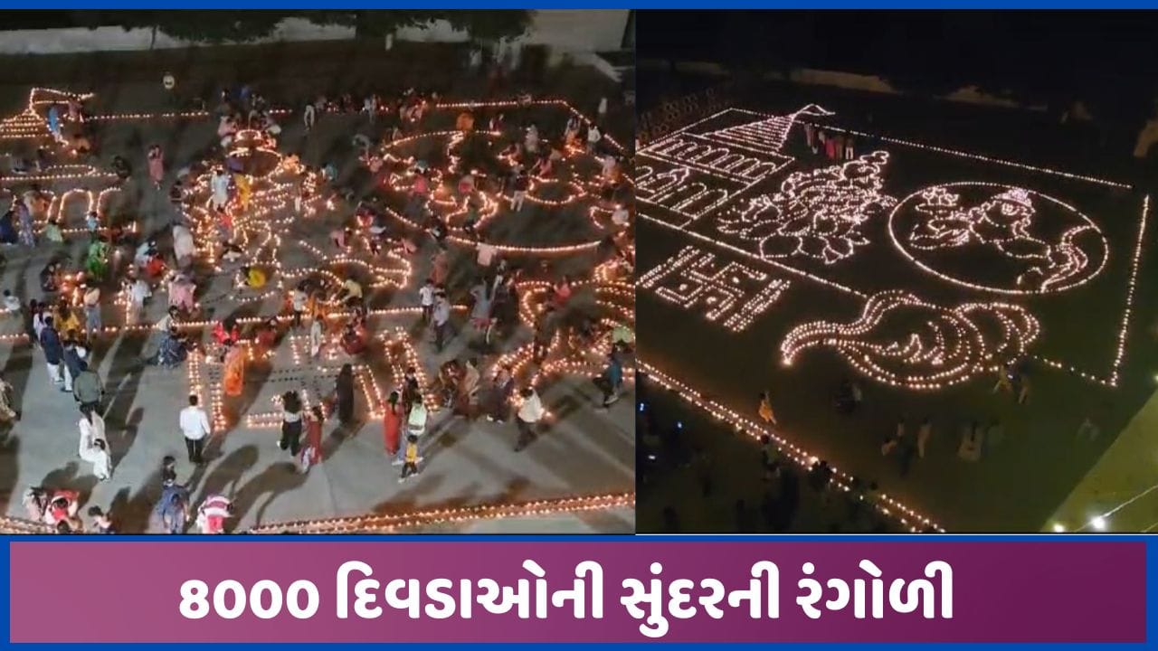 8000 દિવડાઓ વડે રામ મંદિર, ભગવાન રામ અને સરસ્વતીની દીપ આકૃતિ તૈયાર કરાઈ, હિંમતનગરમાં આહ્રલાદક રંગોળી