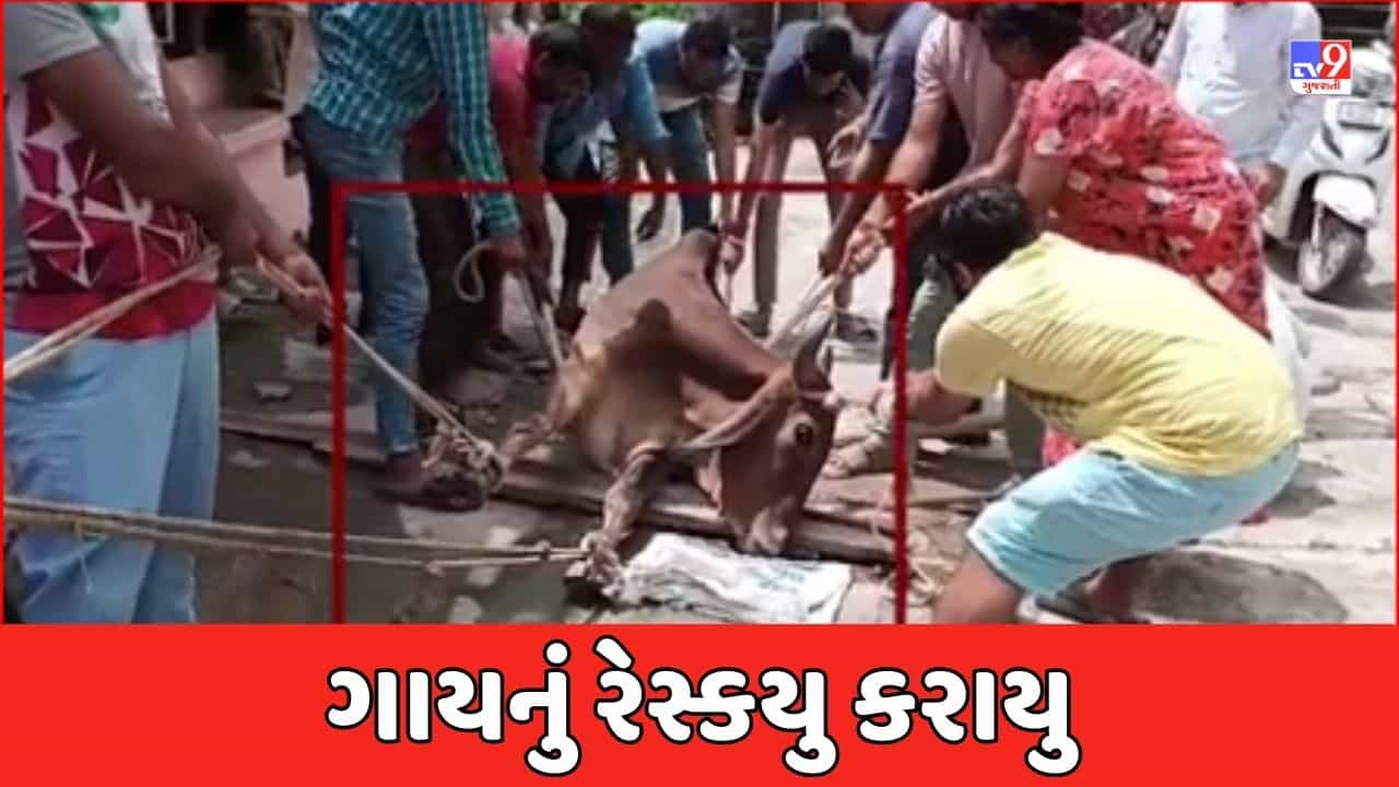 Vadodara : ડભોઇના ચાણોદમાં ગાય ગટરમાં ખાબકી, ભારે જહેમત બાદ કરાયુ રેસ્કયુ, જુઓ Video