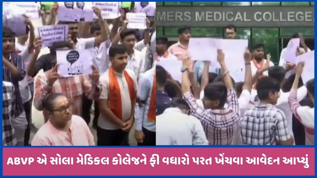 GMERS કોલેજમાં ફીનો વધારો કરવાને લઈ હવે વિદ્યાર્થીઓ વિરોધ કરી રહ્યા છે. રાજ્યભરમાં ABVP દ્વારા આવેદન પત્ર આપવામાં આવ્યા છે. ABVP દ્વારા રાજ્યભરમાં વિરોધ નોંધાવ્યો છે. અમદાવાદમાં પણ આવી જ રીતે વિરોધ રજૂ કરવામાં આવ્યો છે. વિદ્યાર્થીઓની ફીમાં વધારો કરીને સાડા પાંચ કરી દેવાતા રોષ વ્યાપ્યો છે.