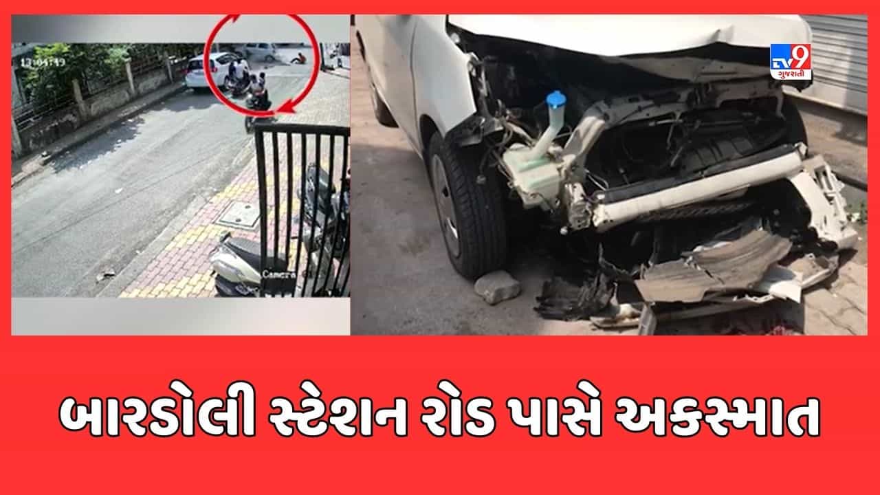 Surat : બારડોલી સ્ટેશન રોડ પાસે અકસ્માત સર્જાયો, કાર ચાલકે બાઇક સવાર બે લોકોને લીધા અડફેટે, જુઓ Video