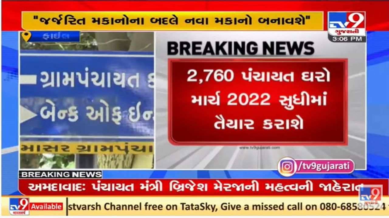 ગુજરાતમાં 2760 ગ્રામ પંચાયતોમાં નવા પંચાયત ઘરો બનાવવામાં આવશે. જેમાં હવે જર્જરિત મકાનોને બદલે નવા મકાનો બનાવવામાં આવશે.