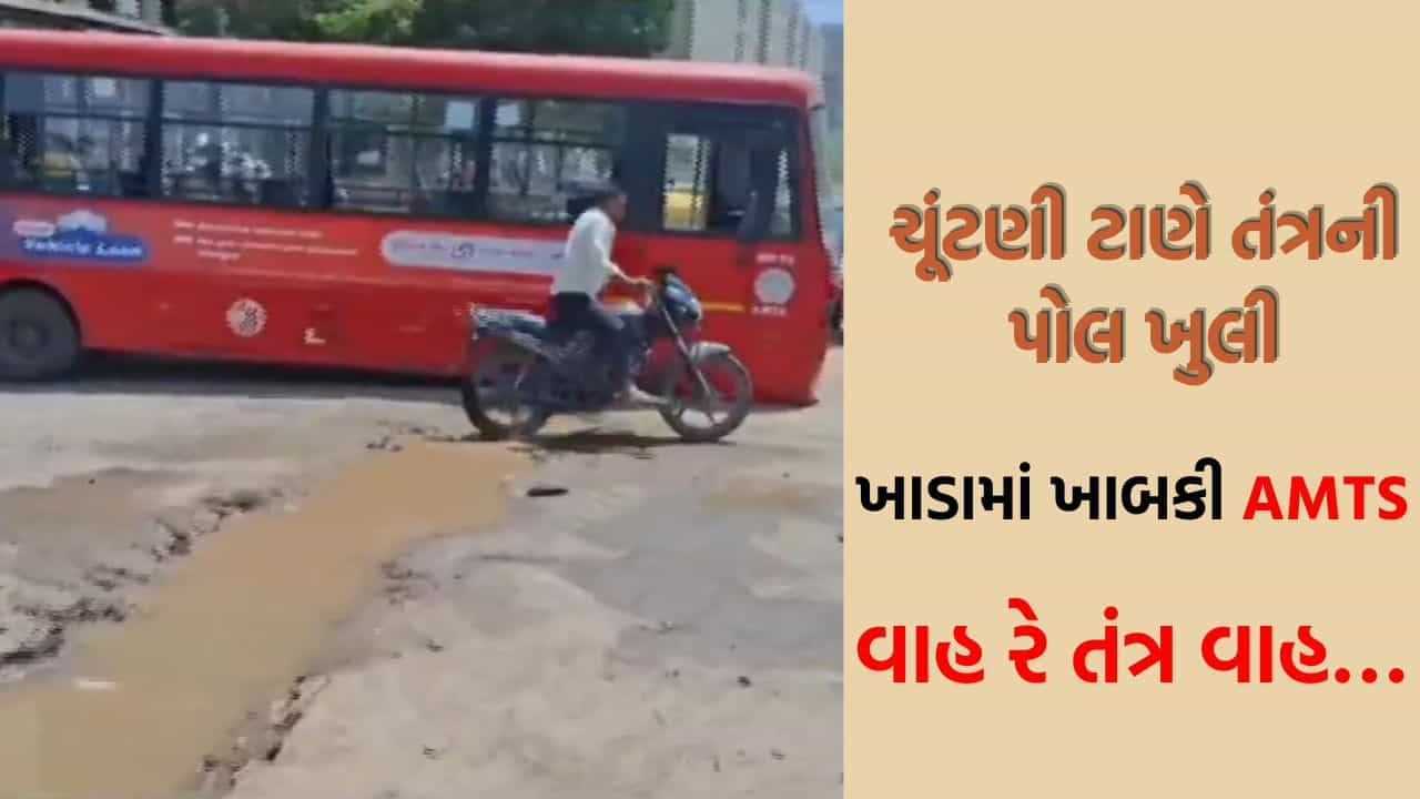 ચૂંટણી સમયે જ AMTSએ ખોલી તંત્રની પોલ, ગોતામાં ખોદાયેલા ખાડામાં બસ ખાબકતા તંત્ર સામે સવાલો