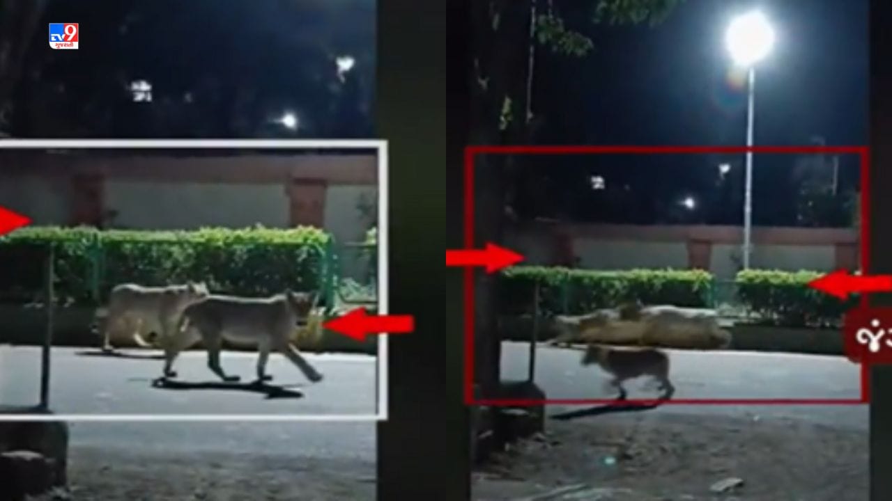 Amreli : સિંહના ટોળાને ઉભી પૂંછડિયે ભાગવું પડ્યું, જુઓ Video