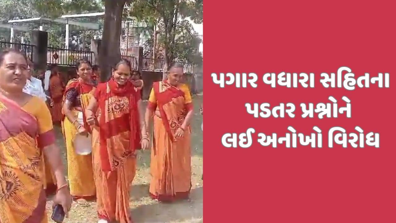 ગરબા રમીને કર્મચારી મહિલાઓએ સરકાર પોતાની પડતર માંગણીઓને પૂર્ણ કરે અને પગાર વધારો કરે એ માટેની માંગ કરી હતી. મહિલા કાર્યકરોએ ગરબા રમવા સાથે વેલણથી થાળી વગાડીને પોતાનો રોષ ઠાલવ્યો હતો. સ્થાનિક આંગણવાડી કાર્યકરો દ્વારા જિલ્લા ક્લેકટર સહિક અધિકારીઓ અને ઉચ્ચ કક્ષાએ આવેદન પત્ર આપ્યુ હતુ.
