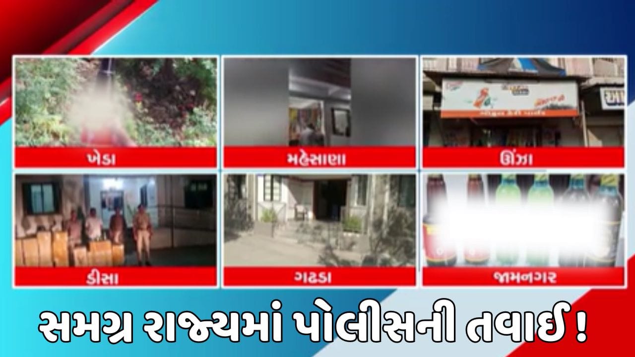 રાજ્યમાં તમામ સ્થળે દરોડા પાડીને શંકાસ્પદ સિરપનો જથ્થો જપ્ત કરવાની કાર્યવાહી ગત મોડી રાતથી જ શરૂ કરી દેવાઈ છે.ખેડા જિલ્લામાં નશાકારક સિરપ પીવાથી 5 લોકોનાં મૃત્યુ થયા.ત્યારપછી પોલીસ હરકતમાં આવી છે. ટીવી સ્ક્રિન પર પોલીસની કાર્યવાહીની 6 તસવીરો જોઈ શકો છે.