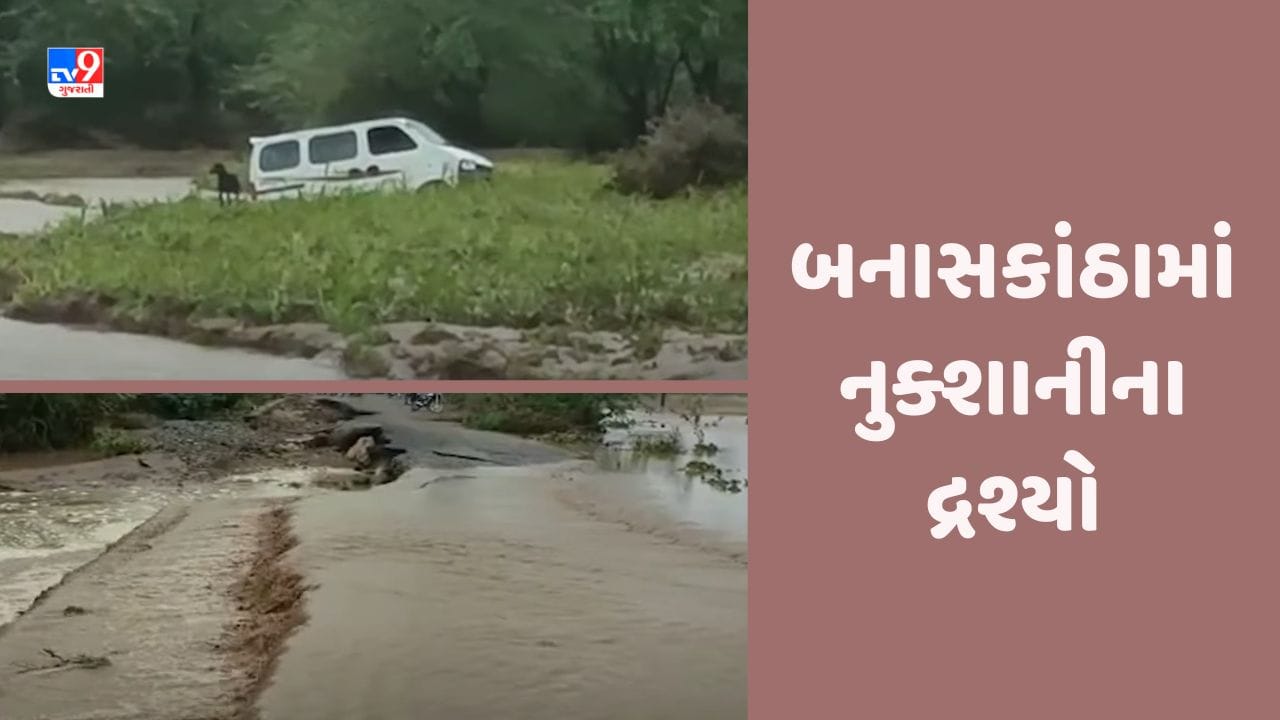 બનાસકાંઠા જિલ્લામાં ભારે વરસાદ વરસ્યો છે. જિલ્લામાં બિપરજોય વાવાઝોડાની અસરને લઈ ધોધમાર વરસાદ વરસ્યો હતો. જેને લઈ વરસાદથી ધાનેરા તાલુકામાં મોટુ નુક્શાન થયુ છે. ધાનેરા તાલુકામાં અનેક રોડ-રસ્તાઓ તૂટ્યા છે. ભારે નુક્શાનીના દ્રશ્યો જોવા મળી રહ્યા છે. ભારે વરસાદને લઈ એક વ્યક્તિનુ મોત નિપજ્યુ હતુ. જ્યારે 20 થી વધારે પશુઓના મોત નિપજ્યા હતા.